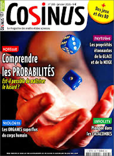 Cosinus est un magazine pour aimer les maths autrement, à travers des énigmes, des casse-têtes, de la logique, des jeux de nombres et des curiosités mathématiques.