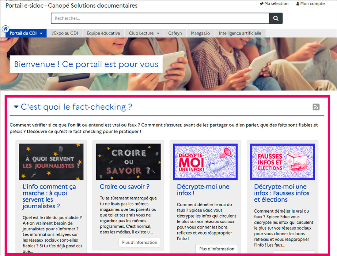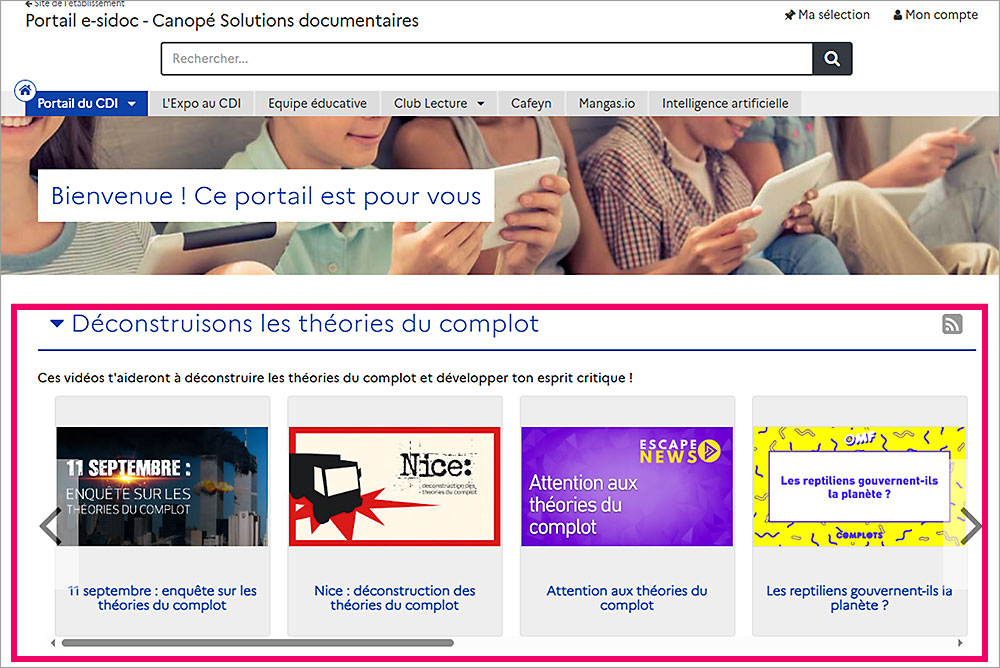 Ces sélections thématiques enrichiront les pages consacrées à l’éducation aux médias et à l’information (EMI) sur le portail e-sidoc de votre établissement. Elles pourront également être intégrées dans vos séances pédagogiques.